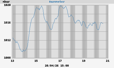 Today's max: 1016,2 mbar at 11:22:34